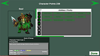 New System: Character Progression The framework for what I hope is the last major game system is in place. Character Points are earned every x amount of experience points (for now, every 50 xp ne...